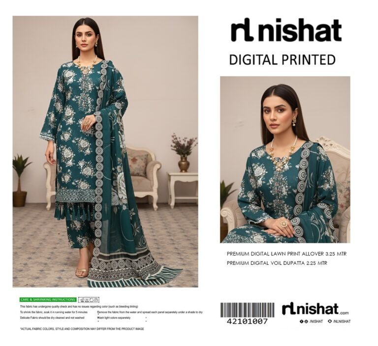 Teal Blue Premium Digital Printed Lawn 3-Piece Suit