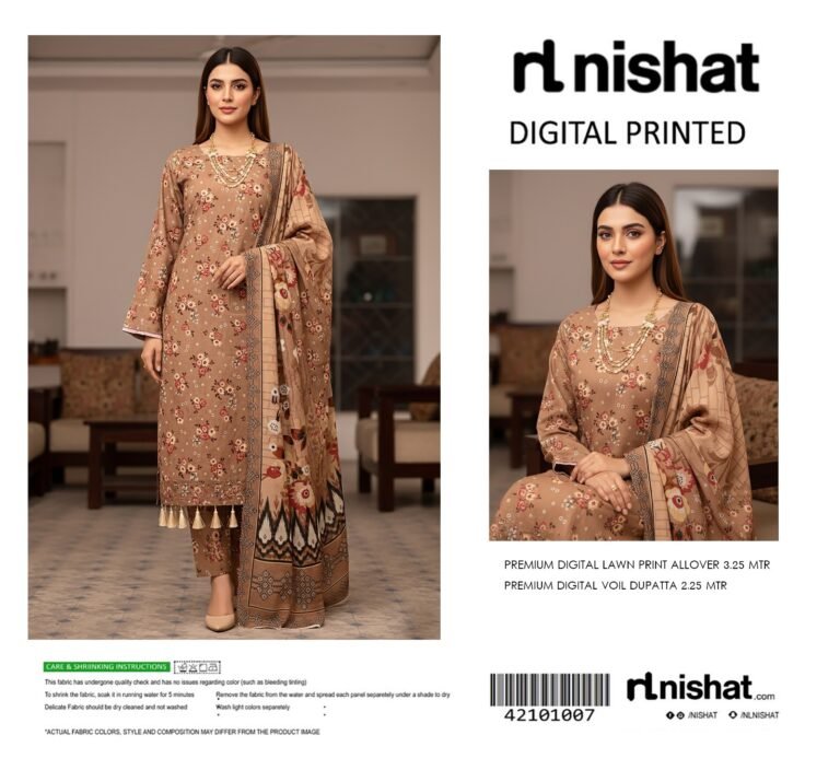 Warm Beige Floral Digital Printed Lawn 3-Piece Suit